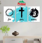 Kit com 3 Placas - Fé, Esperança e Amor - Branco e Preto