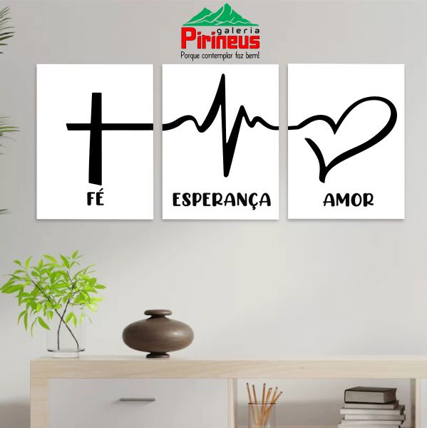 Kit com 3 Placas - Fé, Esperança e Amor - Branco e Preto